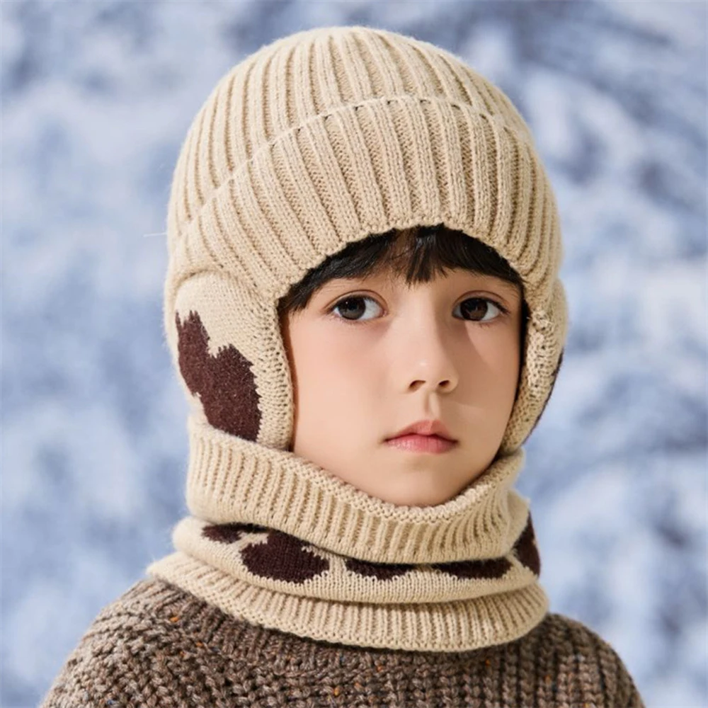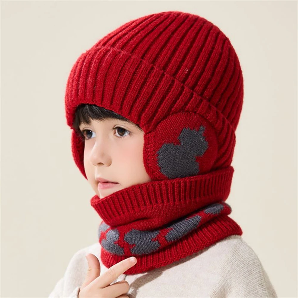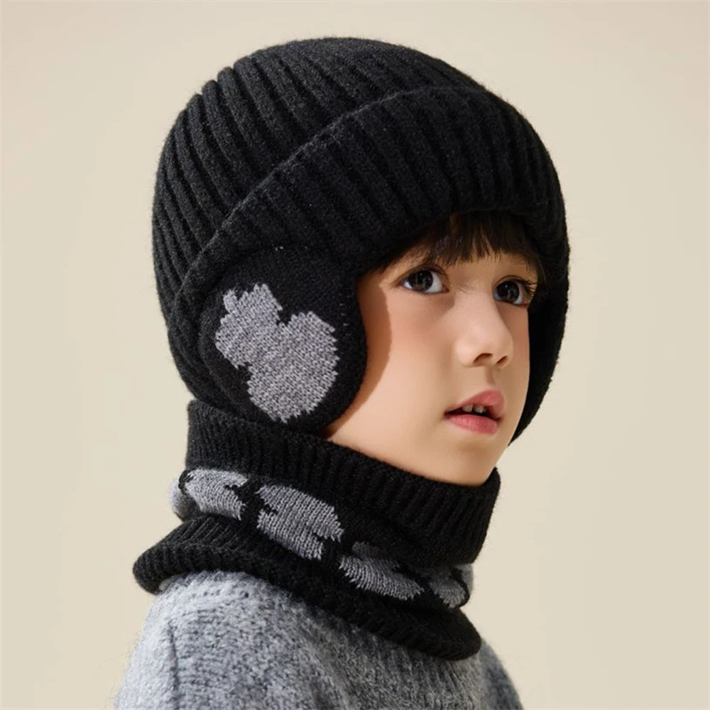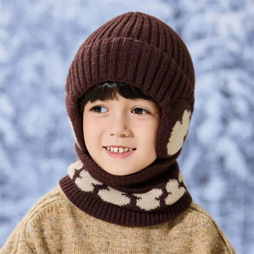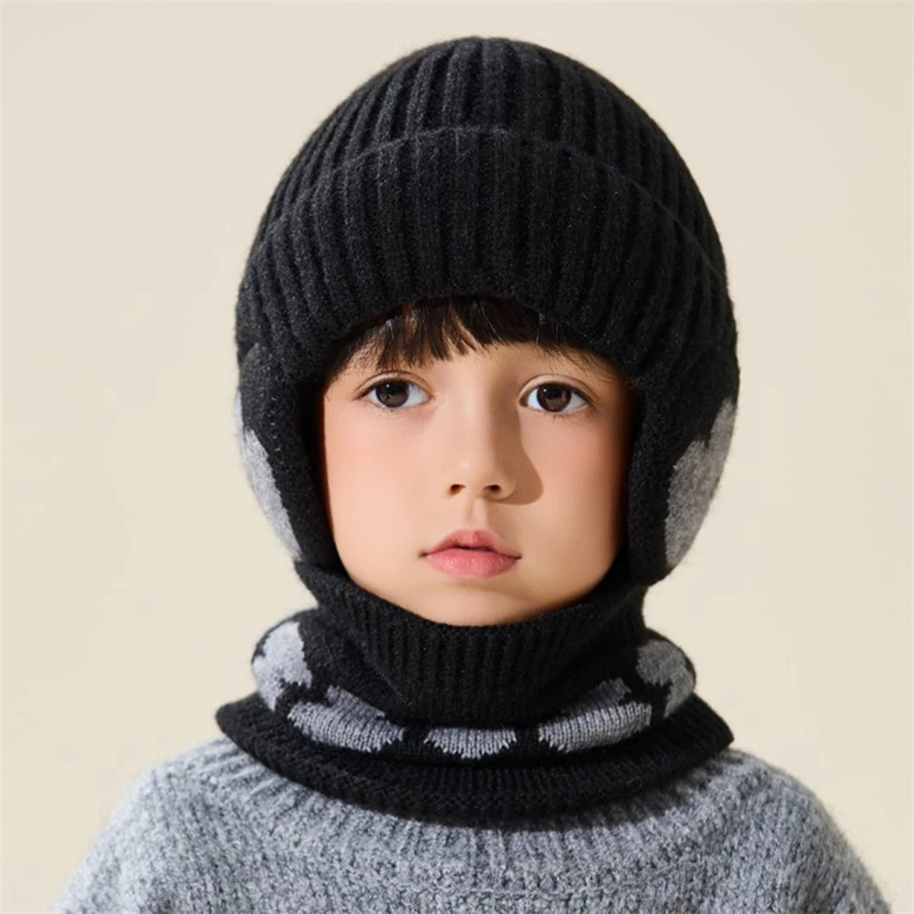 Bonnet Écharpe Enfant Hiver - Cagoule Tricotée Coton Protège-Oreilles
