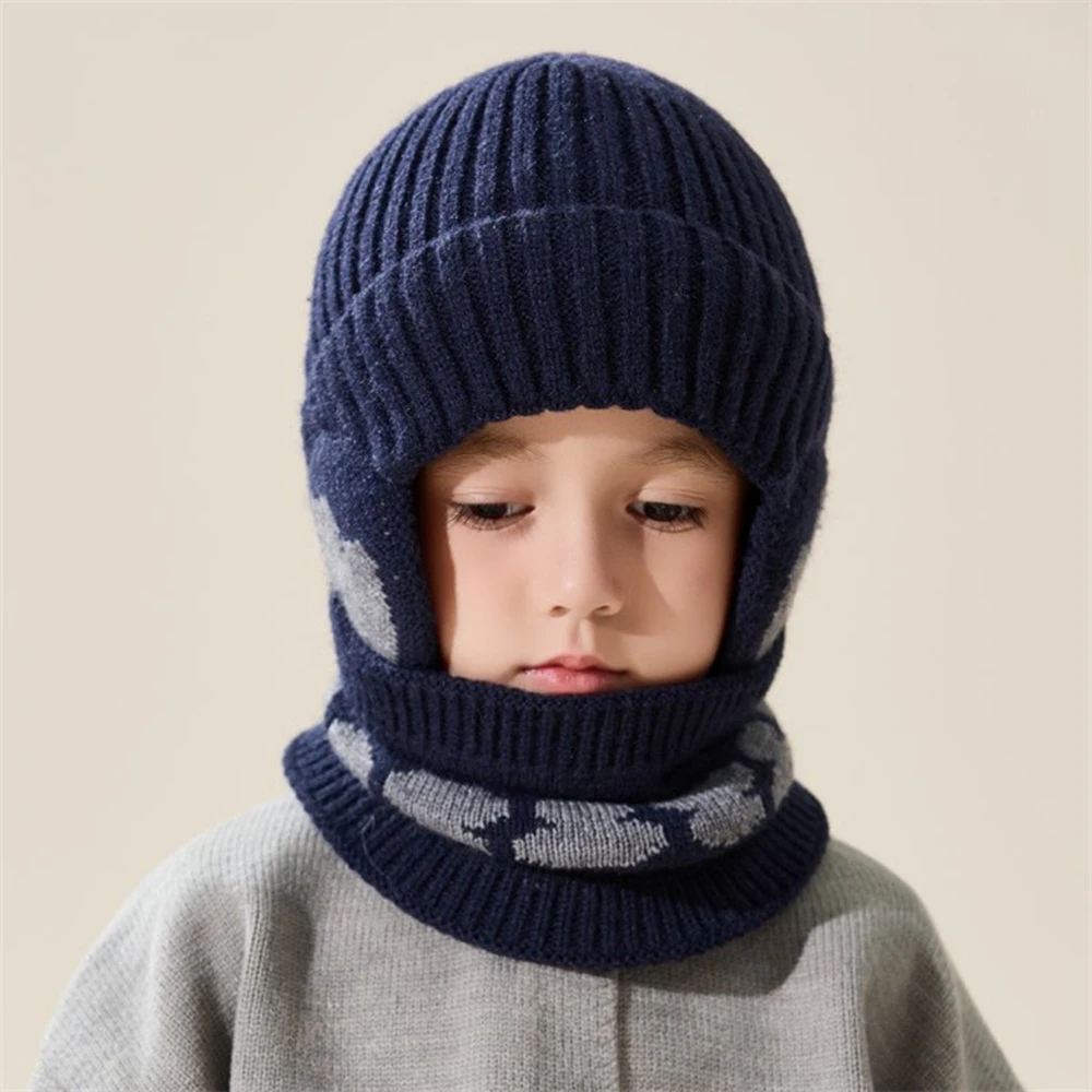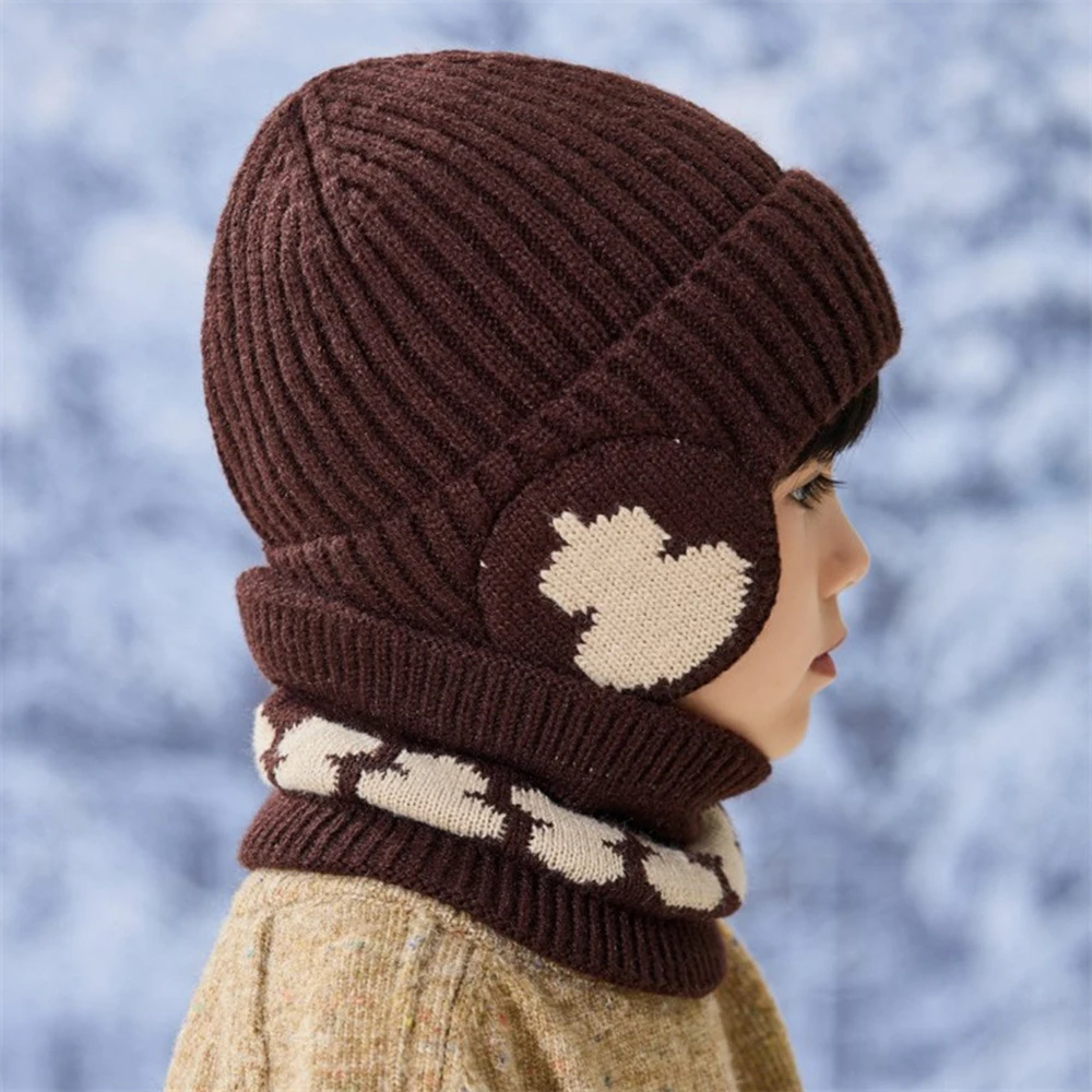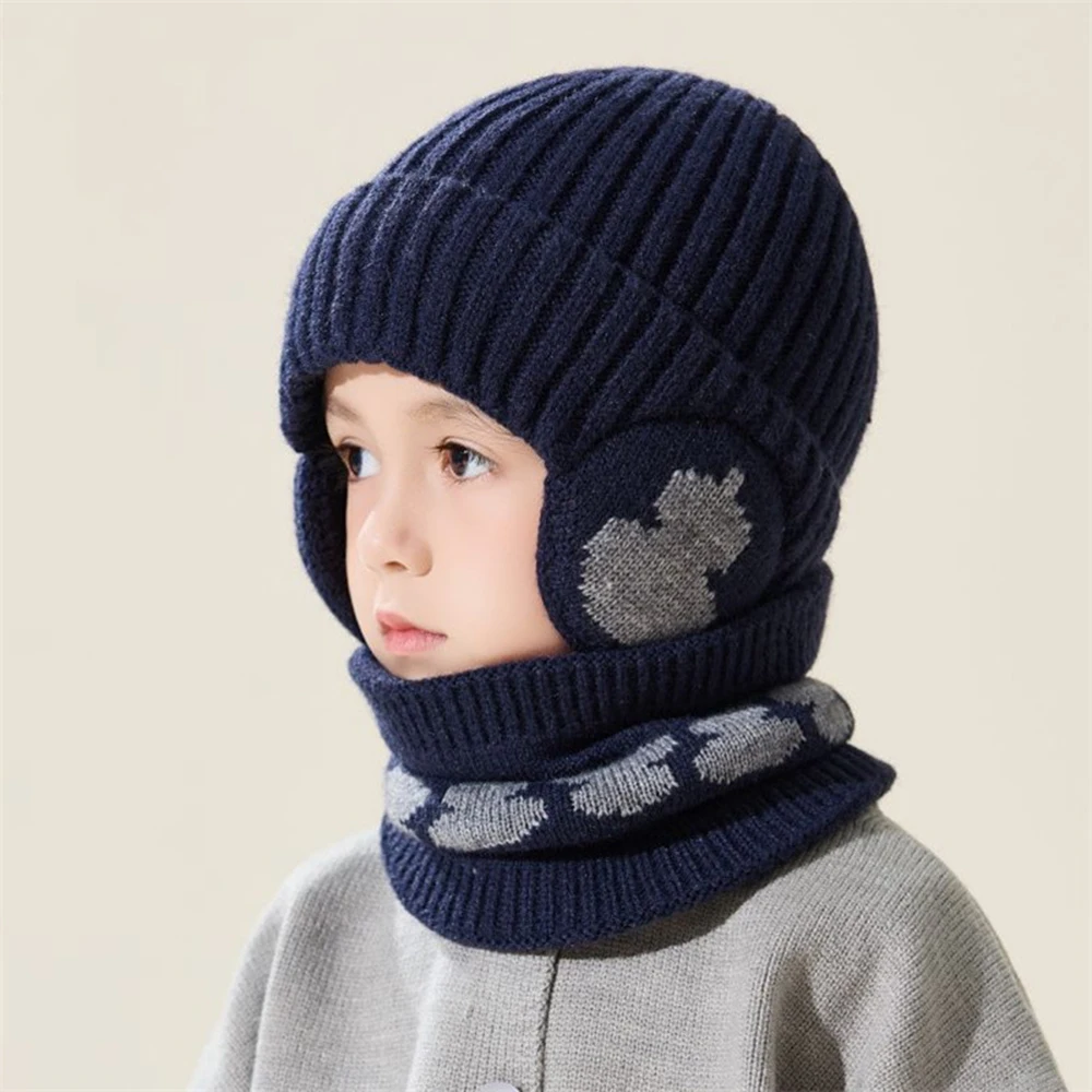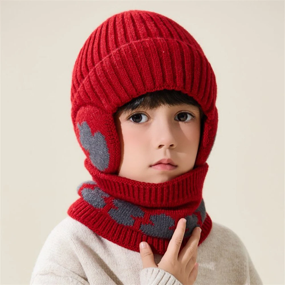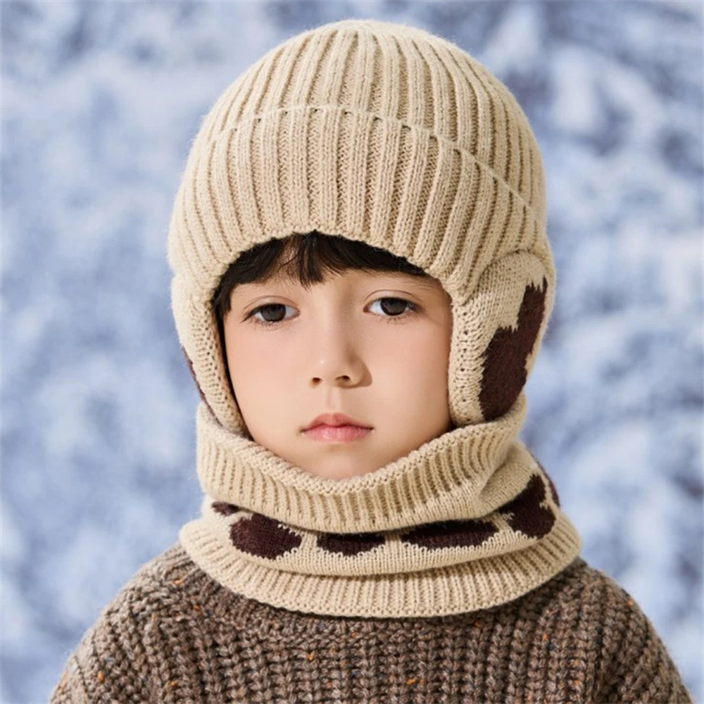 Bonnet Écharpe Enfant Hiver - Cagoule Tricotée Coton Protège-Oreilles